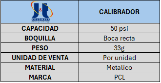 CALIBRADOR 50PSI BOCA RECTA METALICO PCL X UND