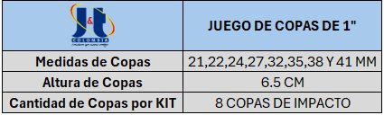• CANTIDAD DE COPAS POR KIT: 8 Copas de impacto